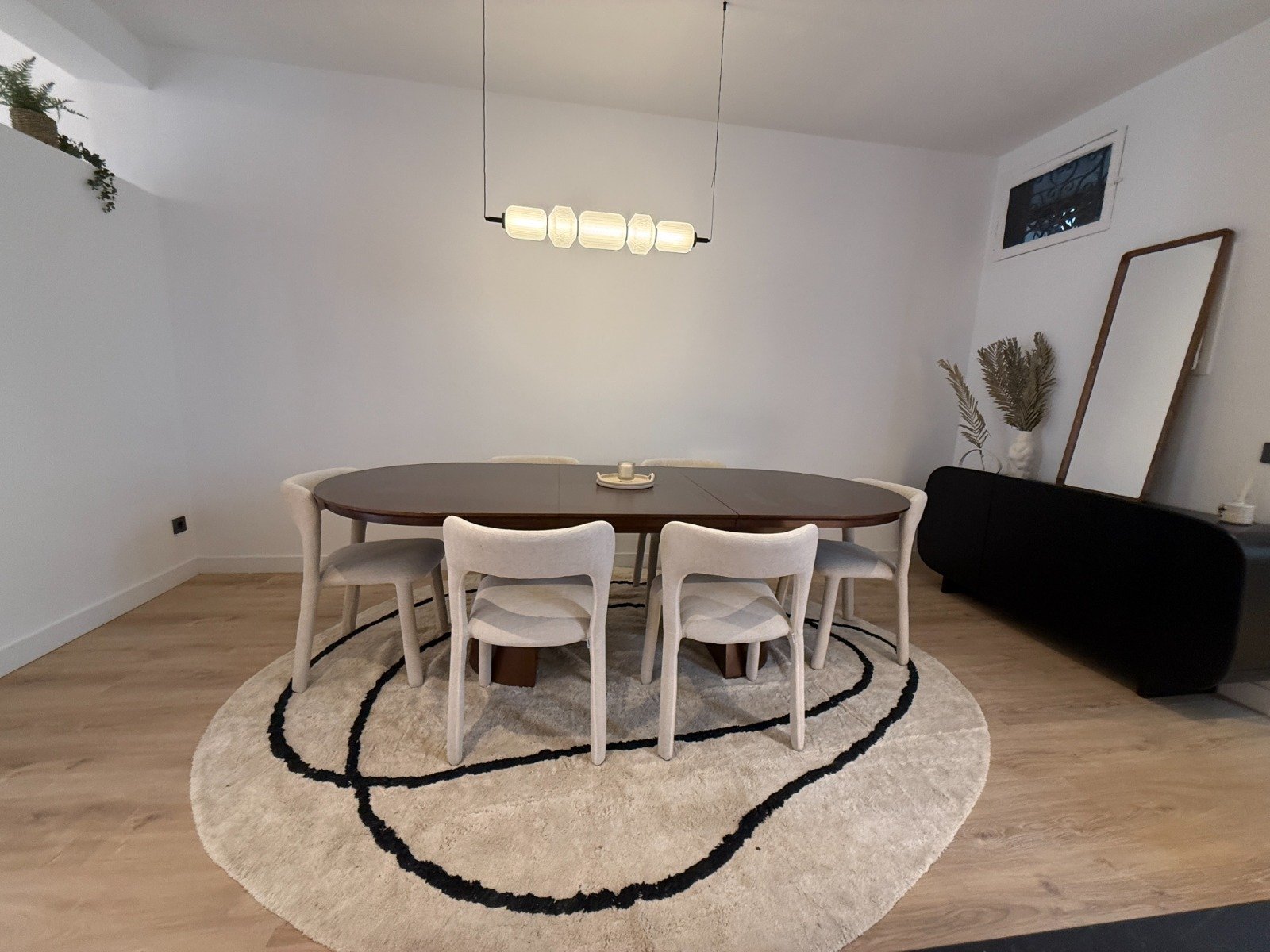 La zona de estar, amplia y luminosa, integra salón y comedor en un espacio acogedor y sofisticado, ideal tanto para el día a día como para recibir. Los tonos neutros, las líneas limpias y la cuidada selección de materiales aportan una sensación de lujo discreto, sin excesos.